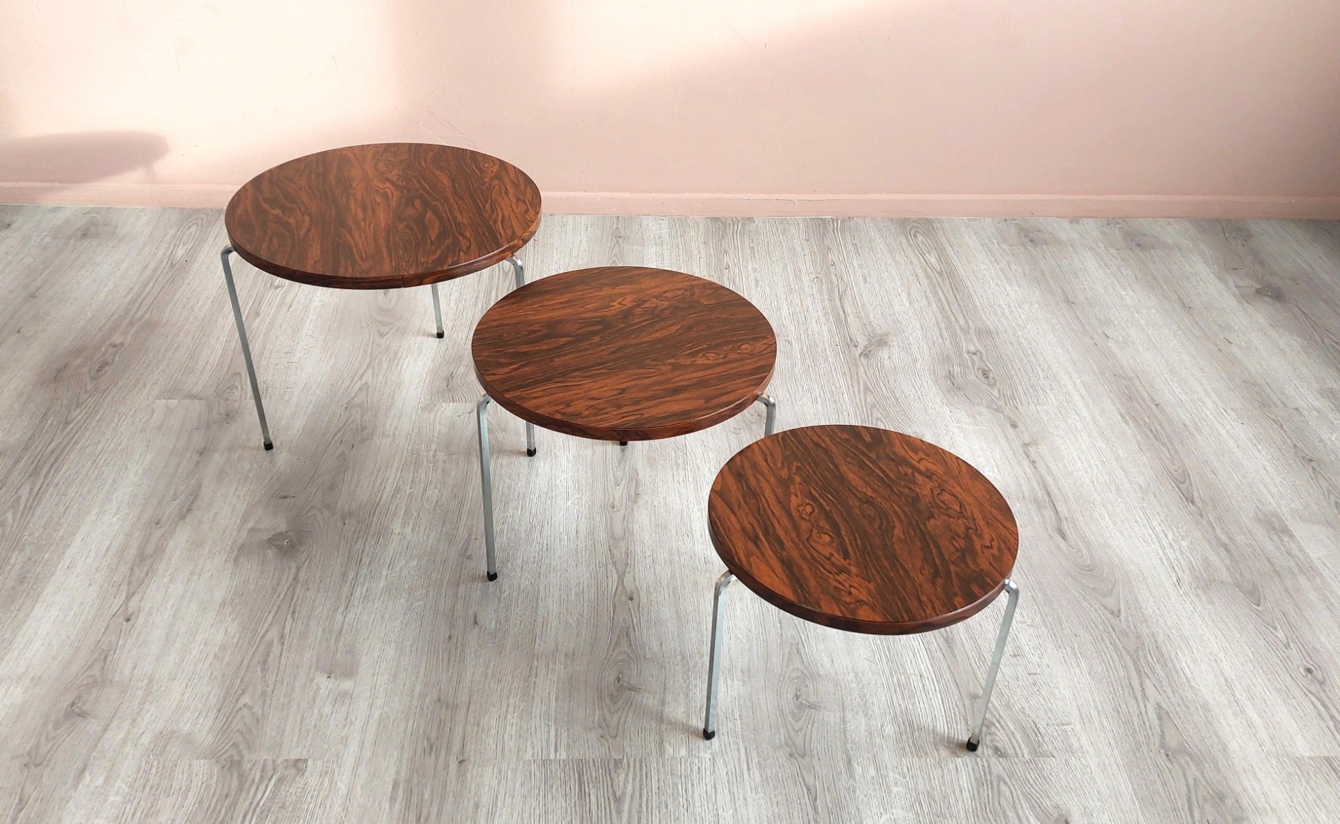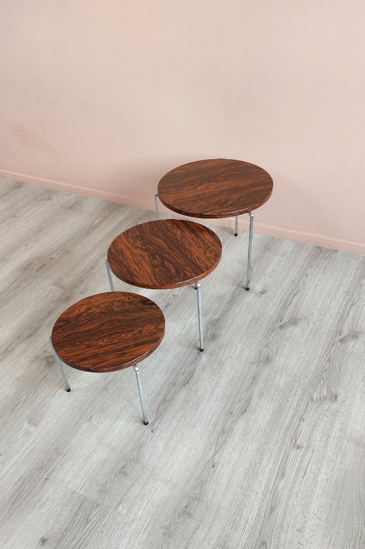 Set of 3, Vintage Tripod Nesting Tables by VAZA Roden.