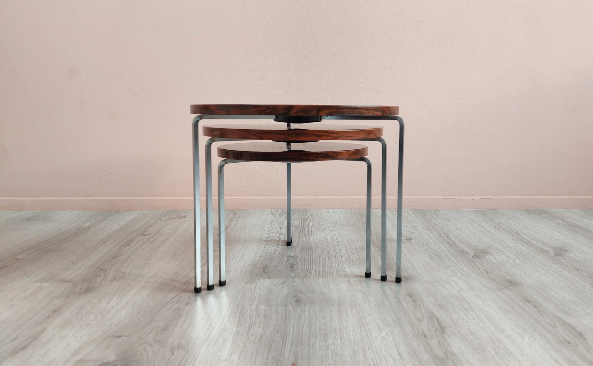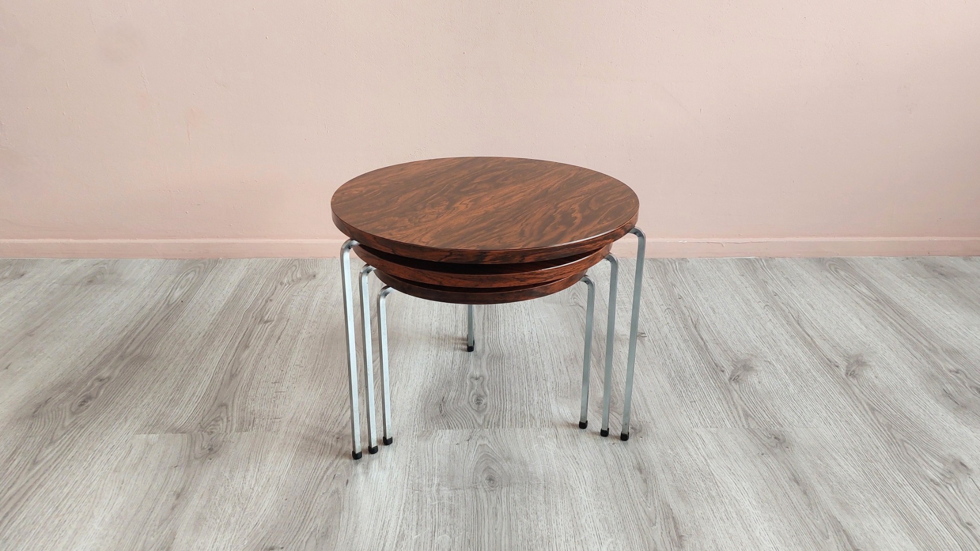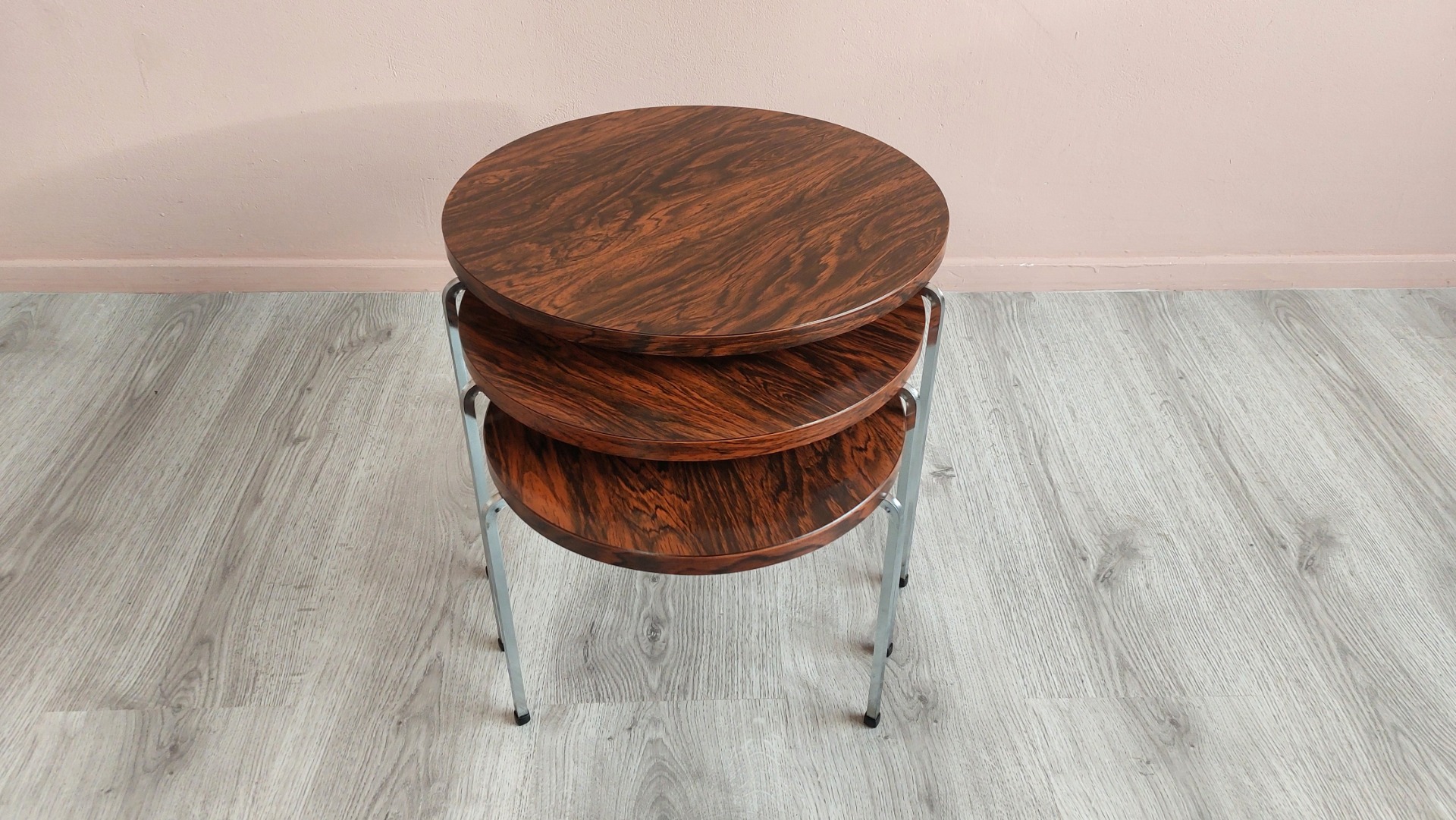 - Materials: Formica Rosewood tops with metal frame