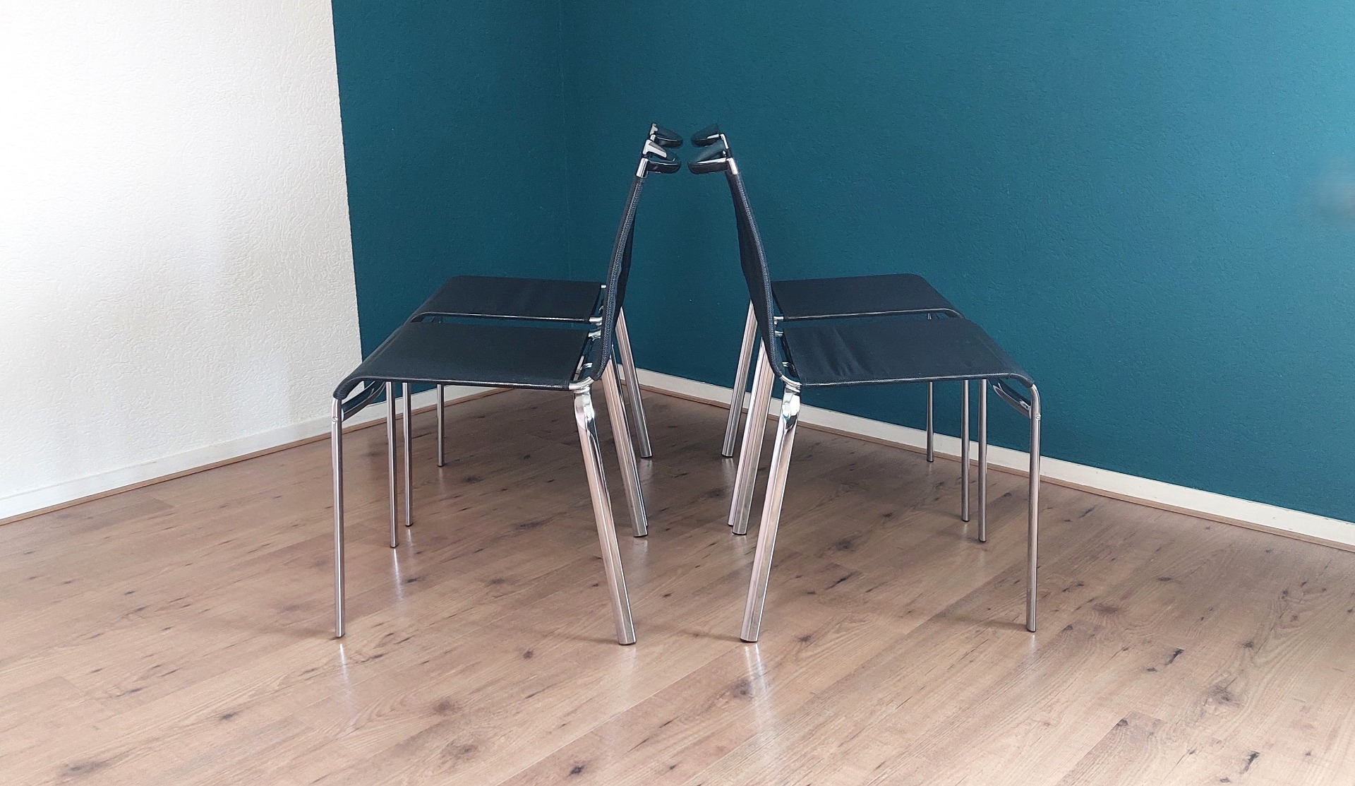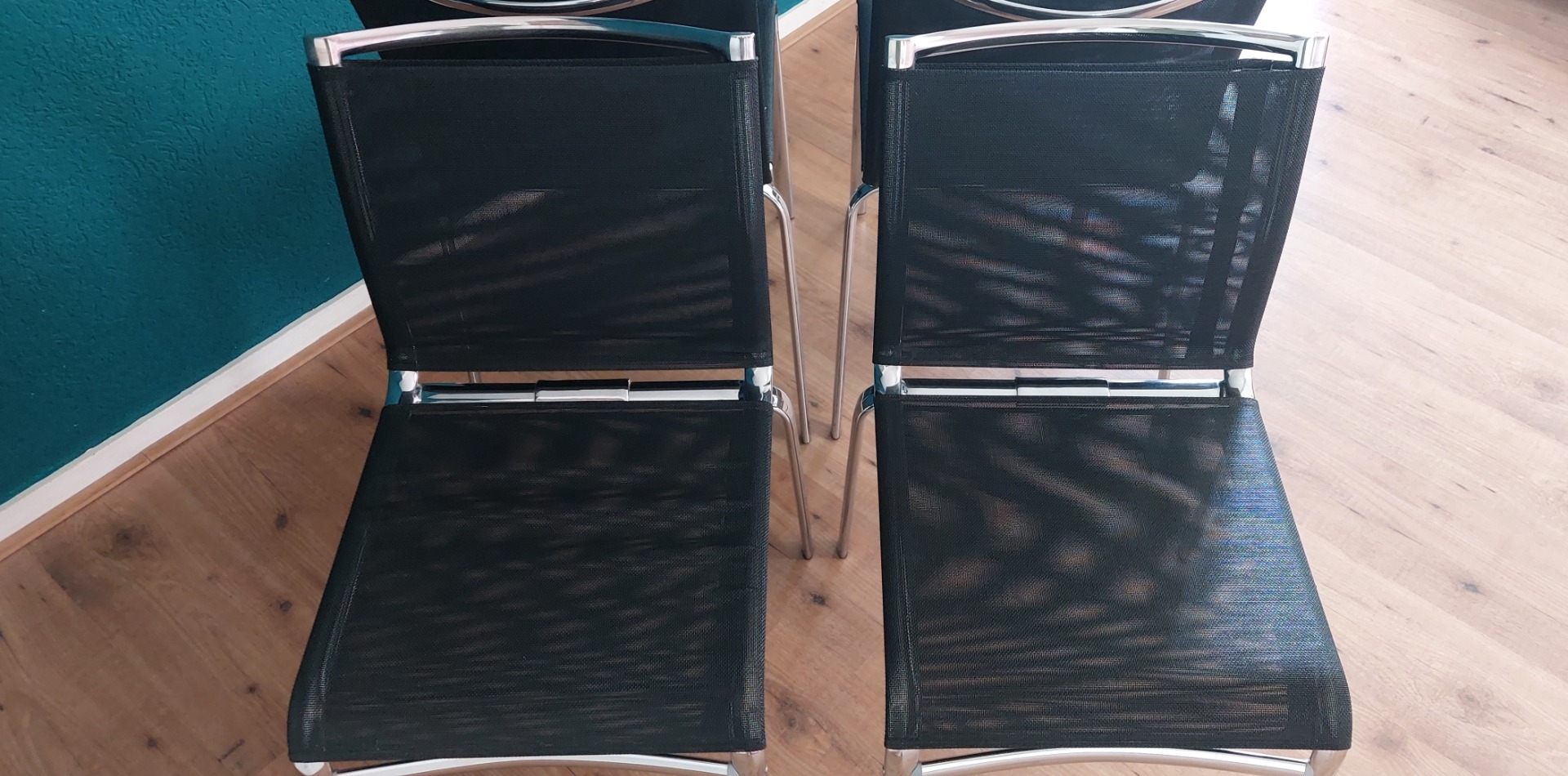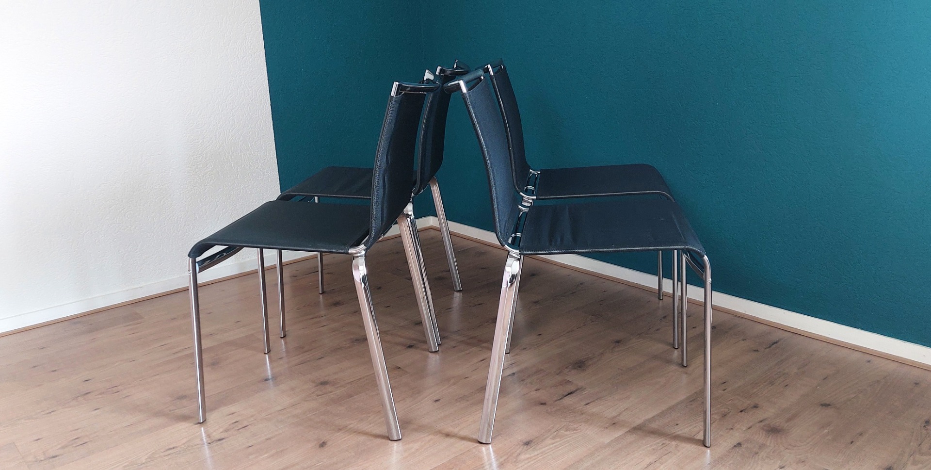 Set of 4 Stackable Net Dining Chairs by Bontempi.